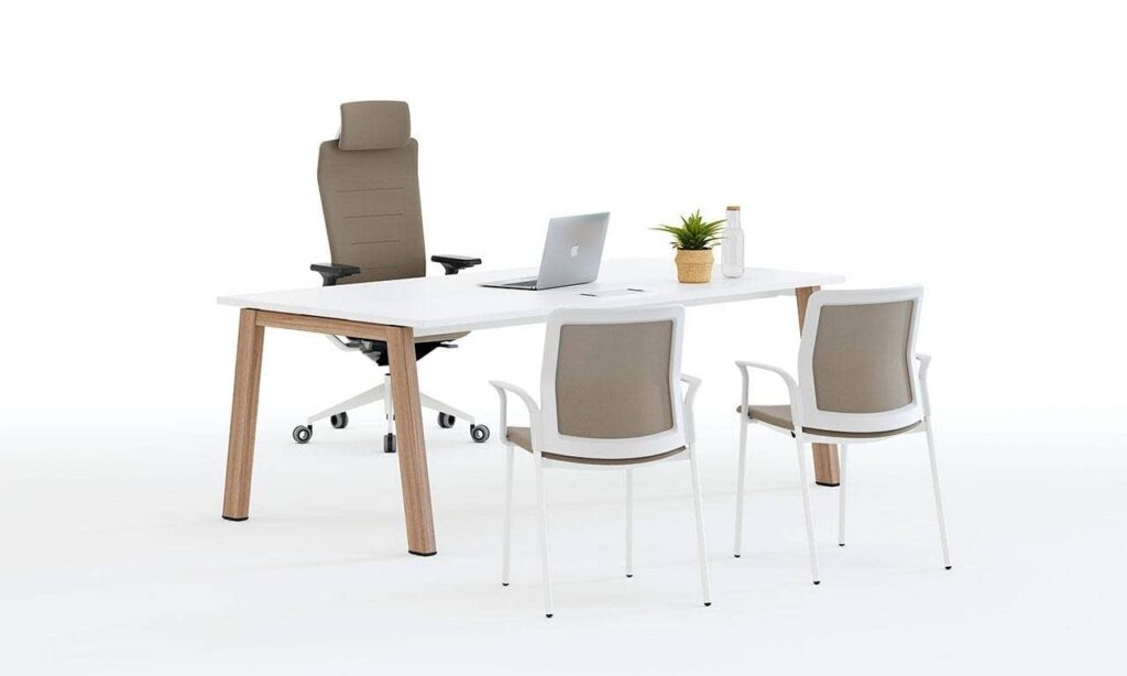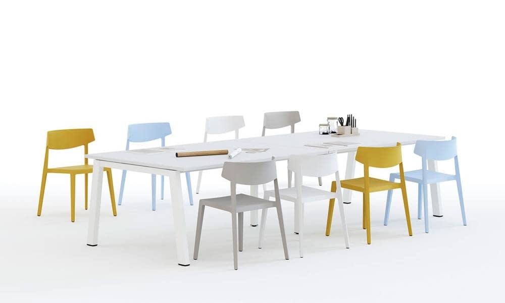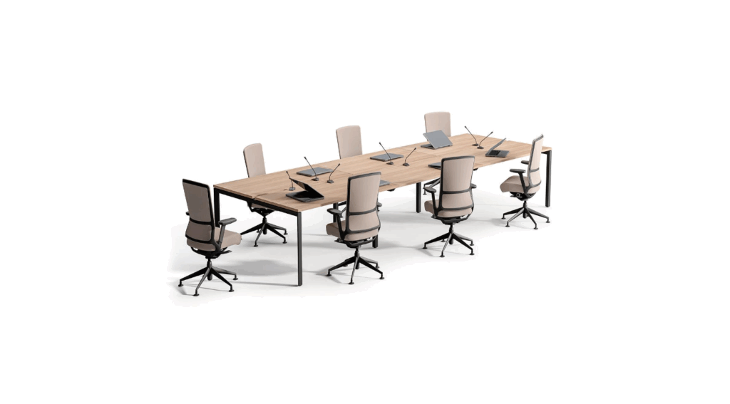 soluciones flexibles; mesas individuales, de progresión, cuádruples, de reunión, de conferencia, de dirección..