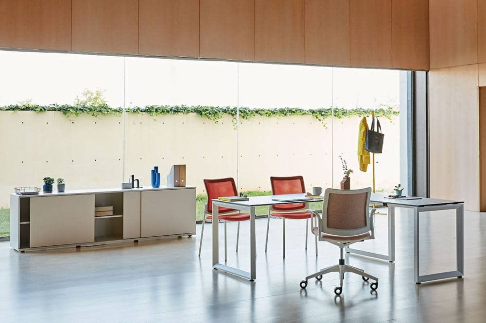 La versatilidad de las mesas Vital Plus permite adaptar el espacio de trabajo a todos los puestos de trabajo y necesidades. Podrá configurar su mesa eligiendo entre una gran diversidad de acabados y materiales técnicos, como aluminio, traslucidos y melaminas naturales.